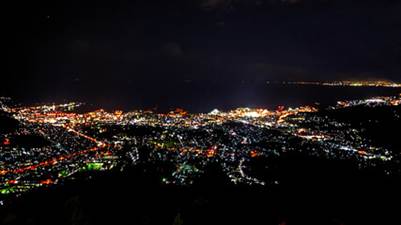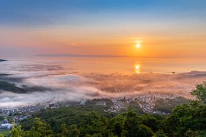 今回の写真が夜景と雲海を組み合わせたものであることからおそらく日没から深夜にかけての時間帯に撮影されたものと考えられます。街の明かりが灯り始める時間帯に雲海が出現すると光が雲に反射して幻想的な風景が生まれるため、非常に人気の高い景色となります。